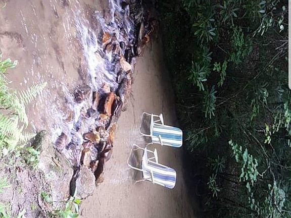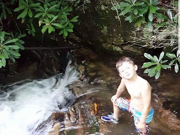 3.8 Peaceful, private acres w/creek frontage, waterfall. Views from large and small covered decks. Electric, sewer and well. No restrictions. Older mobile home w/ well and septic. Many possibilities Serious inquiries please