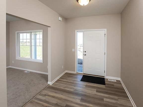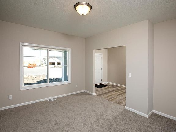 Home is complete and ready for move-in. Spacious and well-appointed two story nestled in a cul-de-sac location. Highlights include an unfinished walkout lower level, Pella windows, spacious concrete front porch, stone accents, full yard of sod, irrigation system, and front yard landscaping. Main level features a spacious kitchen with walk in pantry & large center island, flex room/den, great room with fireplace, decorative stair rails, spacious mudroom with walk in closet & half bath. Upper level features a spacious primary suite with two walk-in closets, primary deluxe bath including a double sink vanity, ceramic tile shower & separate soaking tub, three additional bedrooms, versatile loft (can be used as a family room or office), laundry room, and another full bath. Spacious lower level can be finished with future family room, flex room, bedroom 5, and bath. All measurements are approximate.
