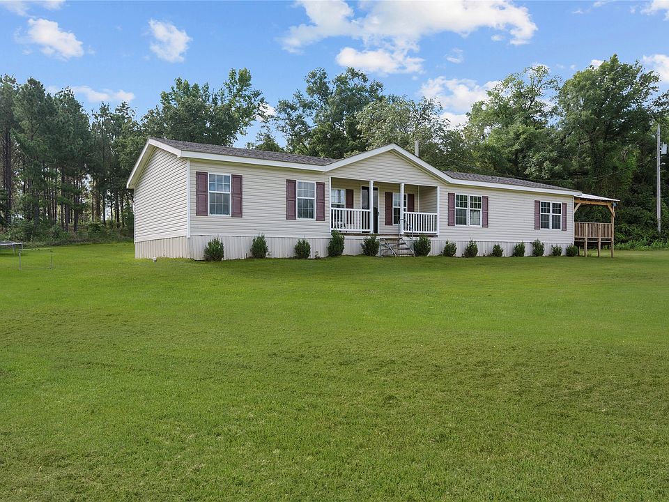 Welcome to your private retreat! Nestled on a serene one-acre lot, this charming manufactured home offers the ultimate in seclusion and privacy. Enjoy peaceful, beautiful surroundings with no neighbors in sight, ensuring a tranquil living experience. Accessible via a quiet dirt road, this property promises a peaceful lifestyle away from the hustle and bustle. This 3-bedroom, 2-bathroom home spans 1,536 square feet, providing ample space for comfortable living. The open floor plan is perfect for both relaxation and entertaining. Step outside to find an above-ground pool, ideal for cooling off on warm days. Don’t miss the opportunity to own this hidden gem—your secluded sanctuary awaits! Visit listing agents Facebook page to view video tour!