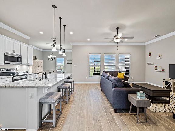 Seller is offering $5,000 toward buyer's rate buy down/closing costs! You don’t want to miss the opportunity to own this well maintained, DSLD built home featuring 5 bedrooms, 3 Baths AND a bonus Room. This home has a great floor plan complimented by a flat, fenced yard that backs up to common space. Upon entering you will notice the open floor plan that lets in lots of natural light. To the left of the foyer and off the garage, you will find the mudroom with boot bench and storage closet making it the perfect space for organizing your day-to-day life. The living room is open to the kitchen and dining area, and is the ideal gathering spot for friends and family. To the right of the living room, you will find bedrooms 2, 3 and 4, hall bath with linen closet and the laundry room. For added privacy, the sliding barn door in the living room allows you to close this hall off. On the opposite side of the home, you will find the owner’s suite complete with “Glamour Closet”, tiled shower with frameless door, soaking tub, private water closet and dual vanities. Upstairs you will find bedroom 5, a full bath and bonus room with walk in storage closet. Additional features include: Generac whole home GAS generator, screened back porch, storage shed, Gold Fortification Certificate and Frigidaire stainless energy efficient appliances. Oldfield Subdivision is located less than 10 miles from 1-10 and less than 15 minutes from shopping, parks, recreation and Mobile Bay. Buyer or Buyer's agent to veryify any information deemed important.