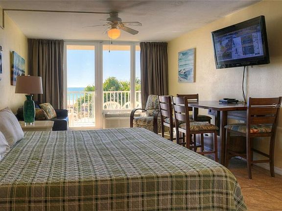 "PRIME GULF FRONT LISTING" DIRECT GULF FRONT 2nd FLOOR STUDIO. THE BEST VALUE ON THE BEACH. Perfect beach front studio. Directly on Treasure Island beach looking out to the Gulf of Mexico. Enjoy panoramic views of Gulf of Mexico and breathtaking sunsets. BRING YOUR BOAT AND STAY AWHILE. BOAT SLIPS OWNED BY ISLAND INN located ACROSS THE ROAD on the intra-coastal along with additional parking and room for RV's. Unit comes furnished. TILED THROUGH-OUT. Newer high impact sliding doors & windows. Just a beautiful place to be. Amenities include a beachfront Heated Pool, Tiki Bar & Lounge area, beach front barbecue grills, beach volleyball, RV Parking area, Community Boat slips and fishing pier. Monthly maintenance includes electric, WI/FI, cable, water, building insurance, ground maintenance, Security, trash removal., & reserves. Community Boat slips and fishing pier (Located across the road with extra parking and RV Parking). NEWER ROOF January of 2017 & Parking area recently re-topped 2019. This Suite provides a steady stream of income. Plenty of repeat vacationers. Use it, rent it, and love it, or ADD THIS ONE TO YOUR 401K. Keep it as your Beach Get-a-Way. No place on the beach offers a better value. BEST ON THE BEACH. ALL THE AMENITIES. Use the on-site management, rent it yourself, or keep it for your own beach retreat. Enjoy AND YES, THE ELECTRIC, CABLE AND INTERNET IS INCLUDED IN THE MONTHLY MAINTENANCE FEE. NOTE: ALL MUST adhere to the CDC guidelines when visiting a showing.