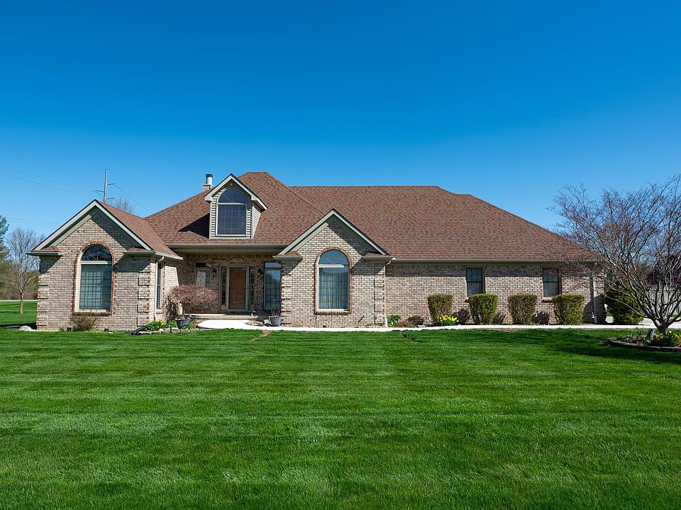 Nestled on a generous 2.35-acre corner lot, this full-brick ranch home with endless curb appeal offers a delightful blend of space and charm. Boasting 3 bedrooms and 2.5 baths, the 2,197 sq ft layout is designed for comfortable living with its cathedral ceilings and abundant natural light. The updated kitchen features ample counter space, a kitchen island and comes equipped with modern appliances. Adjacent, the breakfast nook provides serene views of a picturesque pond just beyond the beautifully maintained backyard. For more formal affairs, the dining room offers direct access to the back deck, making outdoor entertaining a breeze. The spacious master suite includes a large en-suite bath, a deep walk-in closet, and sliding glass doors that lead to your backyard oasis. The cozy living room, complete with a gas fireplace, is ideal for relaxing or entertaining guests. Ready to add your finishing touch? The expansive, unfinished full basement offers endless possibilities for additional living space, a home gym, or extra storage, and includes rough-in plumbing for a future bathroom. A one-year home warranty is included for peace of mind. This property offers a unique opportunity to enjoy tranquil country living, where you can create lasting memories. Don't miss out—schedule a showing today!