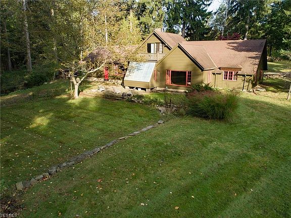 Nestled on 8 Private Acres and surrounded by mature trees you will find this Charming 3 Bedroom Chalet-style Ranch! This gorgeous property is ideal for nature or horse lovers. Enjoy the outdoors hiking and plenty of room for your horses. Covered front entry welcomes you into this warm and inviting home with rustic decor and wood floors throughout. Slate Foyer open to Living Room has Wormy Chestnut paneling and large picture window and Den/Study with stone fireplace, built-in shelving & knotty pine paneling, Eat-in Country Kitchen with wood burning stove and breakfast nook. Dining Room with beamed ceiling, built-in cabinetry and window seat. 1st floor also includes 2 Bedrooms & 2 full baths, one of which was recently remodeled with ceramic floors & soaking tub. Walk-up attic includes 3rd Bedroom with cedar closet & sliders to upper deck....potential to expand second floor for additional living space, walk-in closet & bath. 2-car attached garage with new concrete floor & front walkway. Many other recent updates include: Exterior painted & new septic system installed 2019. Updated plumbing & electrical fixtures, lighting & panel. New attic insulation & footer drains. Chardon Schools.