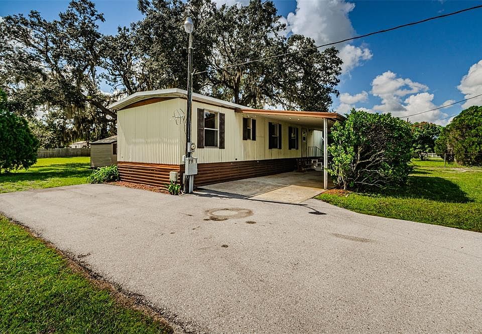Well Maintained Single-Wide Mobile Home in Sunshine Ranches, New Port Richey for sale. This 2 bedroom 1 bath mobile home has large an enclosed florida room with a wall-to-wall closet (that could be easily converted to a bedroom) plus a single carport with covered sitting area. The eat-in kitchen has lots of cabinetry, breakfast bar, and is open to the living room area. A large enclosed florida room is located off of the living room. Two bedrooms and one bath are at other end of home. There is a carport with outside covered sitting area in front for your outdoor relaxation. Built in 1983, this mobile home is in great condition, sitting on .35 acre with chainlink fencing surrounding the acreage. Also included is a large shed in back that allows for storage and a washer & dryer. Home is on well and septic.