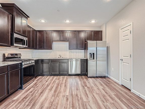 Discover the recently completed, move-in-ready condo at Chatfield Bluffs in Littleton, offering the epitome of convenience. Welcome to the Shea Floorplan, a 2-bed, 2-bath, 884 sq. ft. home crafted by Colorado’s own Lokal Homes. This low-maintenance gem seamlessly combines functionality and comfort, featuring espresso-colored cabinets, sleek granite countertops, and a complete Samsung appliance package, including a gas stove, dishwasher, microwave, refrigerator, and washer/dryer. The upgraded paint package, window coverings, and extended hard surface flooring in the great room add a touch of sophistication, creating a warm and inviting ambiance.