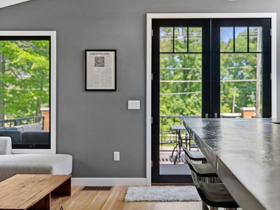 Experience the charm of Union Pier, Michigan, in this stunning and sleek 3-bedroom, 2.5-bathroom vacation home. This two-level residence accommodates up to 8 guests and is within walking distance to shops, eateries, and the beautiful Lake Michigan beach. The open floor plan features a cozy living room, a large bar with seating for six, and a unique elevated outdoor deck with a fire table. The master suite on the main level boasts a queen bed and a chic bathroom with a walk-in shower, while the lower level offers two bedrooms: one with full-over-full bunks and the other with a queen bed. A shared full bath with a metal and glass shower and a half-bath down the hall add to the convenience. Full laundry facilities and garage parking for one car are also available. Feel at home in this well-appointed modern style home, just steps from Townline Beach. The open floor plan includes a cozy living room, a well stocked kitchen with a pantry, and a large bar perfect for casual drinks or seating six for meals. Each bedroom combines comfort and style, featuring high-quality bedding and linens to ensure a good night's sleep. All furnishings and decor are hand-selected for aesthetic appeal and practical use. The garage offers parking for one vehicle, and the other garage bay features a ping pong table for guest use. Townline Treasure's outstanding location offers the beach to the west and Union Pier's shops and restaurants to the east. Enjoy a walk to Black Currant Bakery for coffee and donuts, rent a bike at Red Arrow Ride, or take a leisurely stroll along Lake Michigan's sandy shores. Union Pier provides a perfect blend of relaxation and adventure, with opportunities for kayaking, paddleboarding, and exploring nearby towns like New Buffalo and Harbor Country. The minimum age to rent this home is 25. Pets are not allowed. Check-ins or check-outs are not permitted on Thanksgiving Day or Christmas Day. A non-refundable Accidental Damage Waiver is included with your reservation, covering accidental damage up to $2,000. A guest prescreening may be required, and all guests must review and sign the Guest Occupancy Agreement prior to check-in.