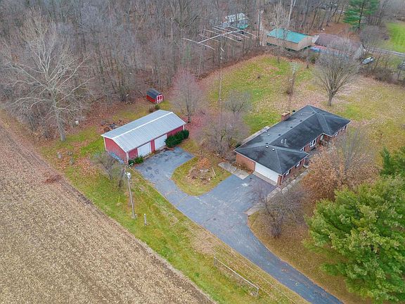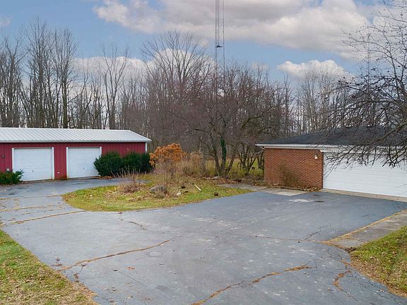 LAND & OUTBUILDING. Welcome home to this 5.64 acre partially wooded property in Greentown. There is a 45x24' pole barn and two car attached garage with a shop. This brick ranch has 1,446 square feet, three bedrooms, two full bathrooms and two living areas.