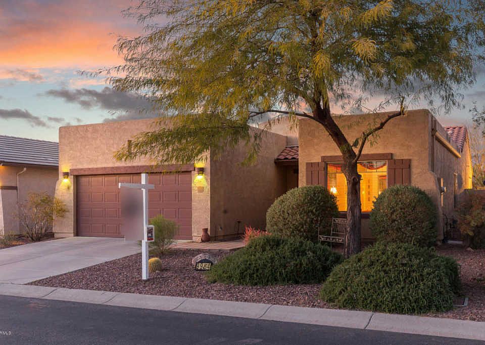 WOW! POPULAR DISCOVERY MODEL has a PRIVATE, GATED COURTYARD, tasteful territorial style exterior, MOUNTAIN VIEW and is close to the large COMMUNITY POOL in the sought after GATED COMMUNITY of Peralta Trails! This home has access to both the POOL & RECREATION/FITNESS center. This home boasts MANY IMPROVEMENTS and SPECIAL FEATURES including ... PRIVATE BACKYARD with VIEW FENCE, generous, EXPANDED PAVER PATIO, covered patio, built-in BBQ, serene fountain, TILE & WOOD LAMINATE FLOORS in all the main living areas, STAINLESS STEEL APPLIANCES, recessed lighting, GRANITE COUNTERS & backsplash, BREAKFAST BAR and H20 Concepts & WHOLE HOUSE WATER TREATMENT SYSTEM too! You'll love the EXTENDED LENGTH GARAGE, new microwave and disposal & authentic SALTILLO TILE in courtyard... See Documents Tab for the "Bill of Sale" listing all of the furniture remaining with home.***Additional furniture is negotiable***LIVING ROOM _ table & lamp at end of couchDINING ROOM _ 2 black chairsOFFICE _ bench under window, desk, file cabinet & 2 book cases