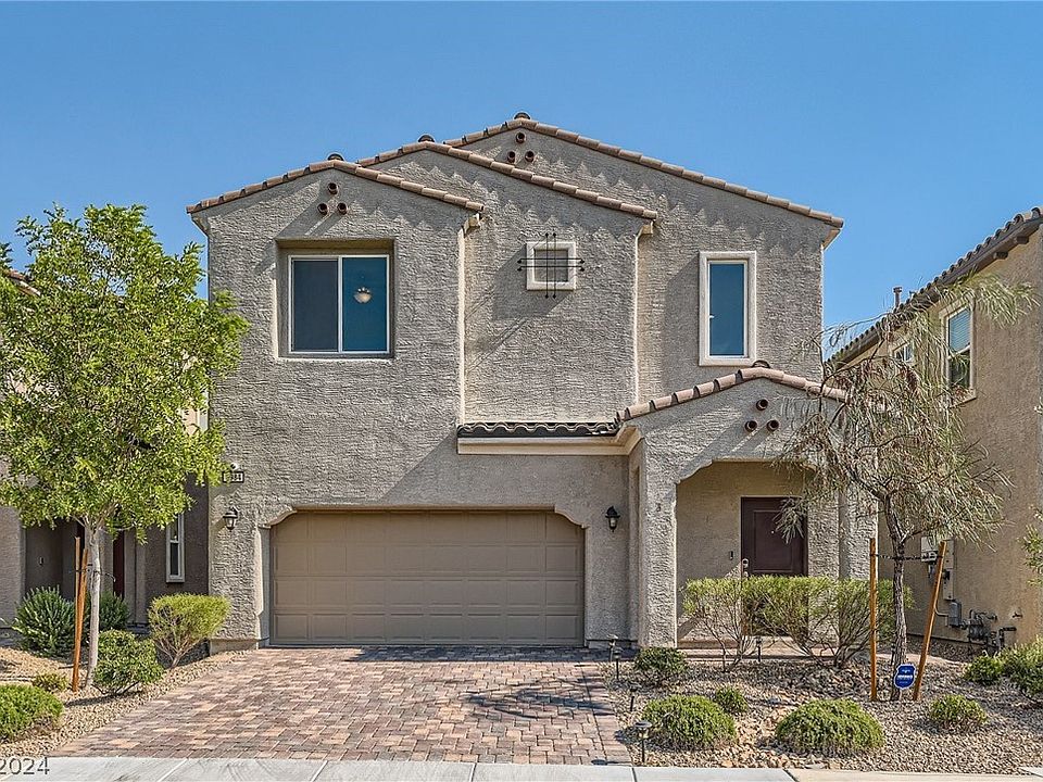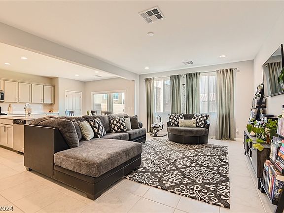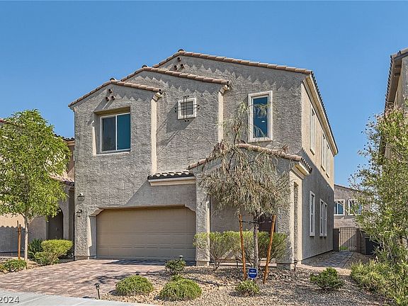 Welcome to this lovely two-story open floor plan in SW Las Vegas. On the first floor, the home features the main living area which includes the family room and dining area, the large sliding glass doors open up to an inviting backyard, complete with Covered patio, artificial turf and pavers, with plenty of room to run around on two or four legs. On the second floor, you'll find a large loft, separate laundry room, guest bedrooms and bathroom complete with 2 sinks and quartz countertop. The primary suite boasts dual sinks, quartz countertop and a large walk-in closet.