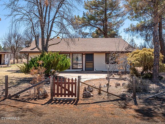 Tucked away on a peaceful 0.63-acre parcel at the end of Willow Lane in Oak Creek Estates, this charming property offers 1,381 sq ft of living space with 2 beds, 1 bath, and a sunlit solarium. The 576 sq ft garage includes a full bathroom, perfect for a workshop, creative space or guest quarters. Enjoy no water/sewer bills (private well & septic) and no HOA just freedom and privacy! Located 15 mins to Cottonwood for shopping/dining and 20 mins to Sedona's red rocks. Make your dreams thrive at 9985 E. WIllow Drive!