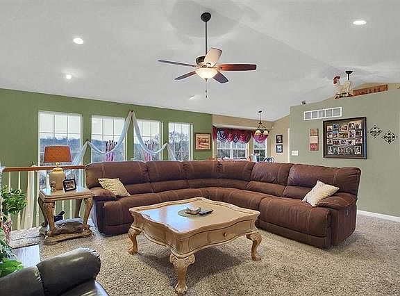 Beautifully updated 4 bedroom, 3 Bath Atrium Ranch on 4 acres in a great location. This home has an attached 2 car garage Plus a AMAZING detached carriage house/garage large enough to fit a fire truck, work shop or 4-6 more cars! Vaulted Great room style ranch with custom eat in kitchen with staggered cabinets, vaulted ceilings, stainless steel appliances and brand new counter tops. Separate Dining room walks out to the new deck overlooking the scenic tree lined backyard. Master suite with updated bath w/ sep tub and shower, and plenty of closet space. 2 more additional beds and full bath on the main floor as well as main floor laundry. Wall of windows leading to the walk out finished lower level with huge rec/game room and separate media room perfect for entertaining and another bedroom and full bath still with plenty of storage space. 5 year old Roof. The possibilities with this lot are endless, perfect for horses, great views. Hurry!!