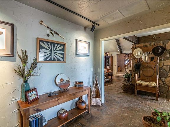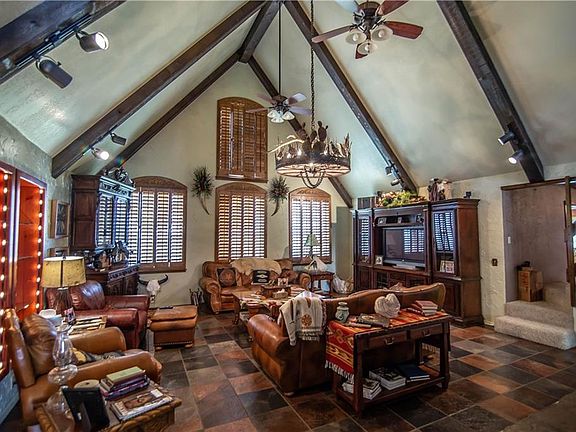Come home to the lodge! This country home is situated just outside of the city limits. Beautiful views both front and back. Sunken great room with vaulted ceilings, stone fireplace, plantation shutters is just a few of the amenities. The game room with vaulted ceiling and Cripple Creek bar area gives this room a rustic cowboy ambiance. Large finished basement. Heated and cooled office sunroom. Loft area overlooks both the living room and the front yard. The master with large walk-in closet custom detailed bath area. Fireplace in the large master bedroom. Nice sized laundry room. 76x45 metal shop with tack room. Pipe fencing so... bring the horses!!!! Views from the sunroom, living room and master suite overlook the meadows below. Custom features throughout the home. Close to golf course and city parks.