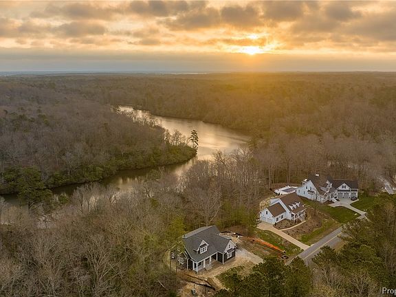 Incomparable new construction Farmhouse on 1.38 acres fronting Richardson Millpond in Stonehouse's stately Richardson's Mill. Under construction now & ready to call home soon! Modern classic kitchen in a gorgeous style offering everything you need to live & entertain. Four-panel sliding glass door leads out to spacious screened porch. Custom details & fine interior styling throughout: trim work includes solid core doors, crown molding almost everywhere, wainscoting in foyer/dining & full wall shiplap with stunning fireplace surround at living room. 10' 1st floor ceilings, quartz/stone counters at all vanities (including laundry room sink), mudroom entrance bench built-in, Andersen windows, front porch aggregate floors, back porch composite floors, are among the many high-end features. First floor primary bedroom suite includes superb tiling surround with walk-in shower, separate garden tub & closet built-ins. 2nd floor offers 2 more BRs (1 ensuite), a Rec room with huge walk-in storage & a bonus room (either could be 4th BR). Located right by the community Mill Pond Park with kayak access for fishing or just a beautiful short walk to the pond lookout point.