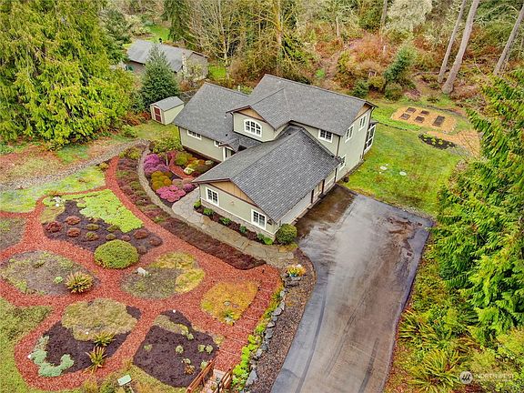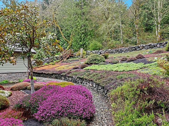 Custom-built & impeccably maintained private garden paradise in Sunrise. Sited on an acre of open space amidst lush mature plantings, rolling lawns, a circular woodsy trail & lovely wildlife setting. Solid ICF construction featuring great room living w/a light & bright wall-of-windows. The floorplan is ideal for relaxing & entertaining w/french doors that flow onto the sunny deck & covered screen porch. Epicurean kitchen w/Lyptus wood finish cabinets, island, & S/S appliances. Incredible office/library w/built-ins. Ample room w/primary ensuite on the main & 2 lg beds up plus flex room & full bath. Fresh paint & refinished floors. Oversized 2-car garage. Minutes to Rolling Bay, ferry, excellent schools & Fay B Park. This is the sweet life!