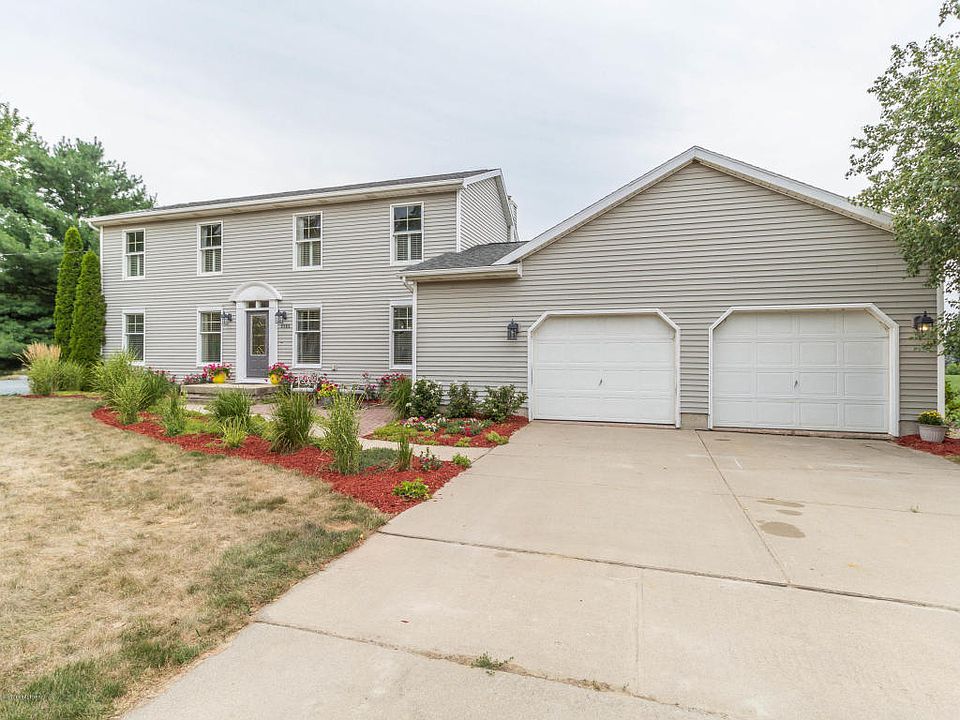 Amazing home in Grand Ledge! Exceptional 4 bedroom home on over an acre of land with pristine views! This home offers a stunning remodeled kitchen with quartz counter tops! The living room offers lots of natural light with vaulted ceiling and large windows. The 1st floor master offers a private bath and walk-in closet. Upstairs you will find 3 additional bedrooms and additional bathroom! Lots of space for family and guests! Lower level walk-out basement is partially finished and offers a nicely finished rec area perfect for entertaining or extended living space!The over sized garage with new service doors will not go unnoticed! The pull down ladder to the garage attic area offers tons of extra storage! Don't miss the 12x16 shed for even more storage! The home is also wired with a Generac panel with plug that powers most of the home! This property is absolutely stunning! Gorgeous rolling hills and trees offer amazing sunrise views!! The view from the deck offers so many serene and peaceful views that won't disappoint! Don't miss out on this great home and property!!! Call today!