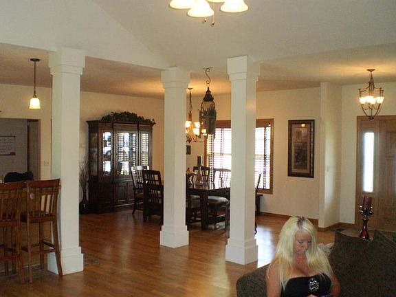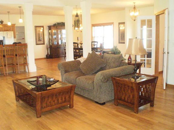 BEAUTIFUL HOME ALL ON ONE LEVEL! This home has Four bedrooms, Three baths, Two laundries and Four car garage.The Great Room features the Grand Entry into the Living area,Dining area and kitchen.The Den is just off the entry for a private area just off the Great Room. The Master Suite has His & Hers full baths with walk-in closet for each. The other three bedrooms each have a walk-in closet. The home has Four car garage and Two covered porches to enjoy the One acre of landscaping and the Country View.