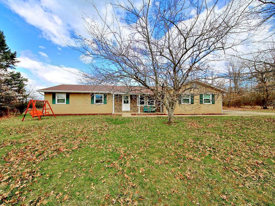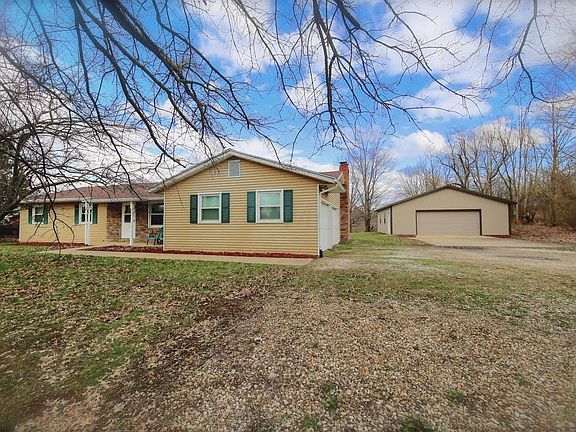 Country ranch situated on 6.24 acres, this lovely home offers 4 bedrooms and 2.5 baths, formal living room, beautiful cabinet filled kitchen with major appliances, nice dining area and open second living room with brick fireplace, first floor primary suite with walk in closet and deluxe on suite bath, finished lower level with rec room, bonus room and half bath, attached 2 car garage plus a detached 32 x 30 garage/pole barn, relaxing rear deck space, impressive property that won't last long at $325,000.