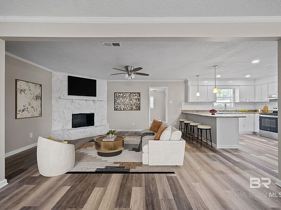 Welcome to 9989 County Road 24 in the charming Dogwood Ridge subdivision of Fairhope, AL. This home is situated on over half an acre, offering a spacious and private retreat. Boasting 3 bedrooms and 2 baths, this 1887 square foot residence has been recently remodeled to meet the highest standards of modern living. The roof and water heater were both replaced in 2024.As soon as you arrive, you will notice the fresh white paint that adorns the exterior, giving the home a clean and inviting appeal. Once inside, you'll be welcomed by the luxurious vinyl plank flooring that spans throughout the entire home, providing both durability and elegance.The bathrooms are a true highlight, featuring stylish grey cabinets and white countertops, complemented by subway tile backsplashes. These thoughtfully designed spaces offer a serene and contemporary ambiance.The open concept layout seamlessly connects the kitchen and living area, creating a perfect space for entertaining and everyday living. The kitchen is complete with white cabinets, subway tile accents, granite countertops, and stainless steel appliances. Prepare meals with ease while enjoying the beautiful aesthetics of this well-appointed culinary oasis.The living room showcases a charming stone wood-burning fireplace, adding warmth and character to the space. Additionally, there is an additional bonus room that can adapt to your needs, whether it be an office, guest room, or playroom.Conveniently located just 15 minutes from downtown Fairhope, you'll have easy access to many shopping, dining, and entertainment options. And if you're seeking a beach getaway, the beautiful shores of Gulf Shores are just 45 minutes away. Buyer to verify all information during due diligence. With preferred lender Chris Nolan at Cross Country Mortgage; Seller is offering 10k towards CC, lender credit $2500 rate to be 5.75% FHA. (with acceptable offer)
