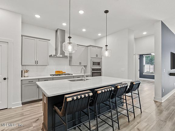 Stunning Modern Villa in arguably one of the best locations of Jacksonville! Upgraded from floor to ceiling this property is better than new. Privately situated on a natural preserve lot; the backyard doubles as a perfect escape or entertaining space. Fully fenced in with preserve views from the 2nd story balcony and a brick paver patio, fully covered and accompanied by a modern summer kitchen your outdoor living just got an upgrade. Large open spacious floor plan on the first floor with a luxurious kitchen, natural gas appliances, quartz countertops, modern pendant lighting and luxury vinyl plank flooring throughout. To the second story you are greeted with custom hard wood stairs, 3 bedroom including the primary suite, the laundry room and a spacious bonus area. Here in Kettering you have your own park and walking trails and access to eTown's recharge center, resort style pool, dog parks, state-of-the-art fitness room, yoga lawn, playground, monthly community events and food trucks.