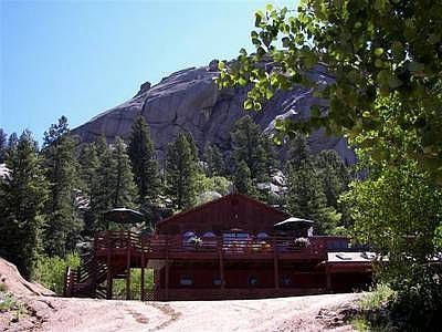 SHOOTING STAR - SOLD! A gorgeous & private 40.46 acres adjoining Dome Rock Wildlife Area & Mueller State Park. Huge rock formations, breathtaking panoramic views including Sangre De Cristo Mountains to the south, Wrights Reservoir and the Collegiate Peaks to the West. Lots of trees, spring, open meadow and hidden valley. Power is off the grid PV system. Home is above 1200 SF storage, mechanical Stalls w/ adjoining equipment storage, barn, indoor arena. 2 corrals, hay storage. Add adjoining 40.57 Acres see 'Blazing Star' MHI #646635 for a total price of $579K.