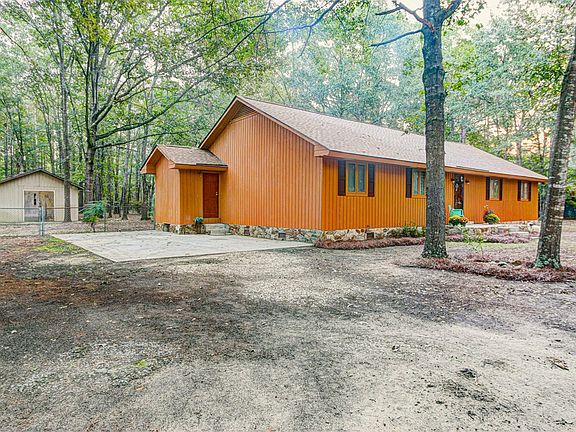 1.5 ACRES and two shops complete this country cypress siding home. Foyer with gorgeous antique heart pine wood flooring and into the living room & dining room. Enjoy your family & friends in the great room that is 26'5" x 17'6" with tile flooring. Kitchen has dishwasher, stove and refrigerator with a wood parquet flooring and a back window over your sink to watch the kids and the deer. A side door allows a great mud & utility room.The home has three large bedrooms all with oak hardwood floors and two large full baths. The master bedroom has a large private bath with a whirlpool tub for relaxation, a walk in shower and a 7'11'' x 7'11" walk in closet.The two shops together are 44' x 16'2" total & a storage building. Roof & HVAC new in 2019. Enjoy the fenced yard, side lot, shop and house.