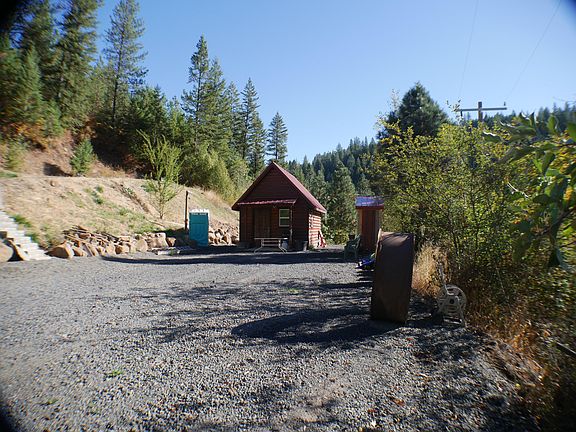 10 acres close to St Maries with water and power. Nice little newer cabin with detached wash house. Landscaping, rocked driveway, rock accents and excavated site for home just above cabin. Septic system in, but current owner has never used and says it is likely pirate (done without permit).