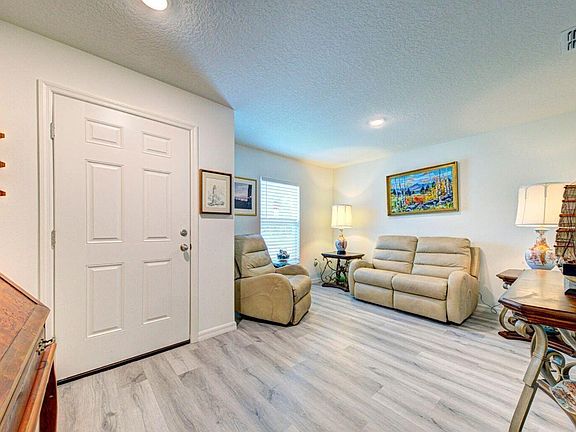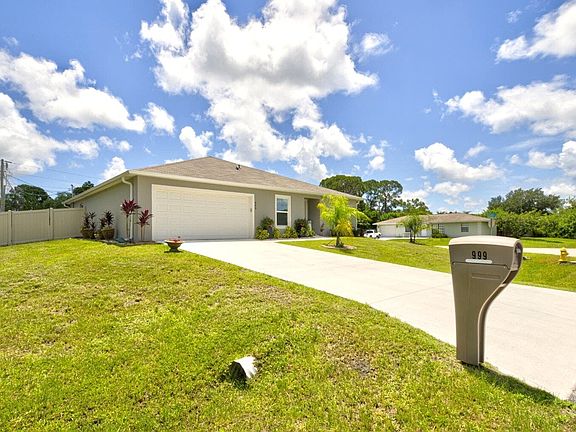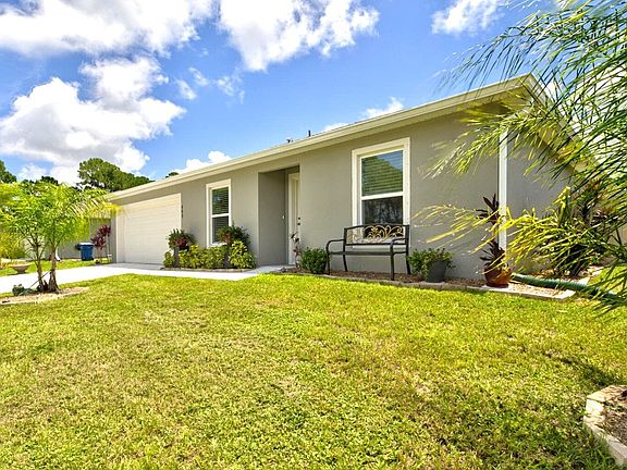 Welcome to this 4-bedroom, 2-bathroom, 2-car garage home built in 2020, located on a spacious 0.29-acre corner lot in Palm Bay. With 1,821 sq ft of living space, this home features a split floor plan for added privacy. Two guest bedrooms and a bathroom are set behind custom sliding doors off the living room, while the master suite is on the opposite side with a walk-in closet and upgraded walk-in shower. The main living areas, master bedroom, and fourth bedroom have updated plank flooring, while the guest bedrooms are carpeted. The fourth bedroom, located near the entrance, is flexible for guests or office use. The open kitchen includes a center island and flows into a large living room, perfect for relaxing or entertaining. Double sliding doors open to a spacious screened lanai overlooking the fully fenced backyard with premium PVC fencing. Washer and dryer are included. Conveniently located near schools, shopping, restaurants, and major roads.