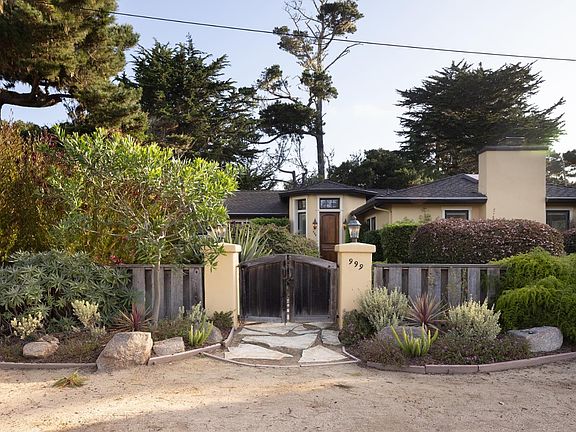 This single level Pebble Beach Country Club West home is desirably located on a corner lot just blocks from the ocean & iconic 17 Mile Dr, and across the street from MPCC Shore Course #1 green with the clubhouse also mere blocks away. It was taken down to the studs in 2005 resulting in an inviting open floor plan with beautiful neutral finishes throughout. Striking formal entry with high ceiling opens to a 600+ sqft great room encompassing the living and dining areas with cathedral ceiling, natural light streaming in through skylights and tall windows, cozy fireplace, and eat-at bar open to the kitchen. Chefs delight kitchen includes island with gas cooktop, double ovens, beautiful cabinetry, abundant countertop areas and storage. Spacious primary suite has vaulted ceiling, large walk-in closet, oversized bath with shower stall & stone finishes, and French doors opening to back deck. Two guest bedrooms are each ensuite, and den/4th bedroom has a closet with French doors to back deck. Beautifully landscaped front yard is fully fenced as is back yard which is very private with open space behind. Deep 2-car garage has laundry sink and an EV charger. Don't miss out on the opportunity to live the Pebble Beach lifestyle in this move-in ready home!