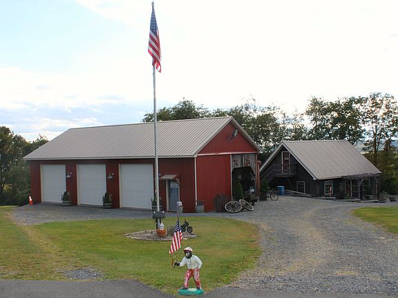 White split rail fencing and silver maples greet you as you enter this 11 acre farmette with views for miles in every direction including the DE water gap. Surrounded by PA conservation lands, the property is private and secluded. Cape cod home with covered wrap-around porch w/wood decking. 4 bedrooms (first floor master) and 2 1/2 baths. 1st floor laundry in mud room. Two separate stairways to 2nd floor for potential extended family quarters. Warm and inviting hardwood floors and stone wood burning fireplace. Plenty of windows lets light stream in and views in all directions. Eat in kitchen w/tile backsplash plus large dining room w/pellet stove. 2 tiered slate patio w/firepit. 2 rear wood decks. Outbuildings offer many uses and flexibility. 3 car detached garage with 10 ft doors. 2 car attached garage on house. Cottage house that was a store. Utility shed, workshop sheds add to the potential uses. Near Rts 611 and 80 yet out in the country. Come feel the serenity for yourself.