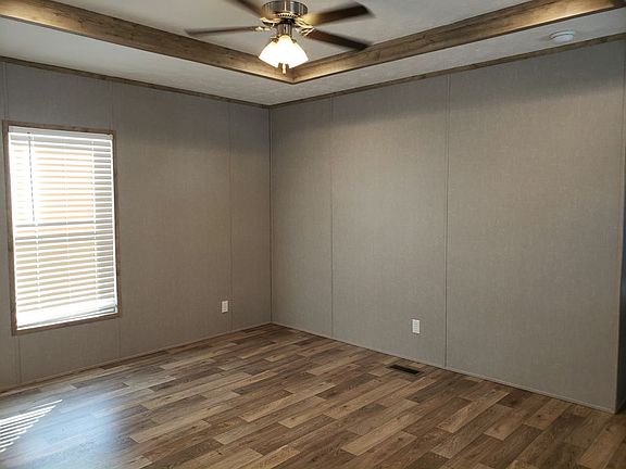 This charming three-bedroom, two-bathroom home is waiting for you! This model features a comfortable living area with decorative tray ceilings and a ceiling fan, a perfectly designed kitchen with ample cabinetry space and energy efficient appliances, and a spacious master en suite. Modern wood-like vinyl flooring makes cleaning up a breeze in the living and kitchen area, while carpeting can be found in both bedrooms. The versatile floor plan makes it easy to comfortably entertain guests or spend a quiet night at home enjoying yourself. This home has a lot to offer, is in a wonderful family-friendly community and is at a price you can afford. What are you waiting for? Stop by or call to schedule an appointment for a personal tour and find out how you can make this home yours today!