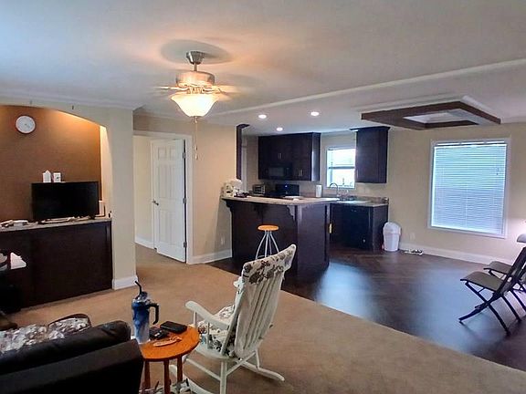 2019 Mobile Home measuring 24 x 48 on corner lot space. Modern style and clean. Built in entertainment center in living room, kitchen appliances included along with ample cabinets, eating high bar, and plenty of counter space. Fully fenced front, nicely landscaped. 6x9 deck off the rear along with an 8x8 tuff shed. Low maintenance hardie board siding with vinyl skirting and ample parking.
