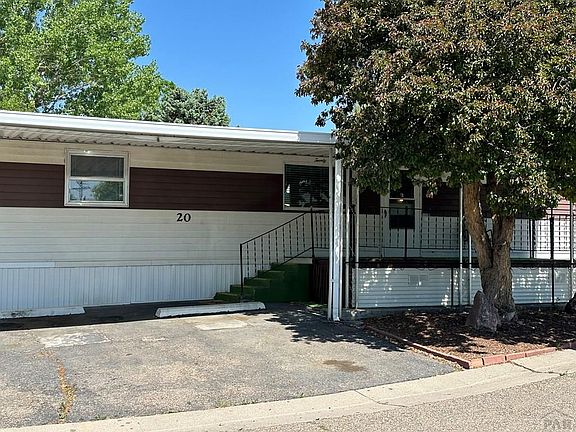 HUD/Manufactured Home located in the Pueblo Grande Mobile Home Park off of Fortino Blvd., close to shopping and restaurants on Pueblo's north side 1 block off of Hwy 50 West. This home sits on the largest lot in the whole park with mature trees and 2 storage sheds. The lot is completely fenced, and dogs are allowed. Home has newer furnace and carpet, with surround sound through-out home. Park includes a seasonal outdoor pool for all residents of Pueblo Grande Park. Monthly lot fee also includes all water, trash and sewer.