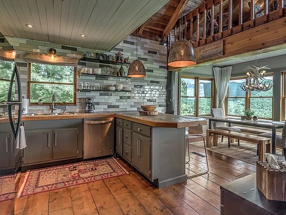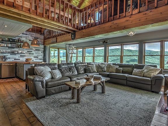 RARE OPORTUNITY to experience the BEST VIEWS in BLUE RIDGE and ELLIJAY at the Mountaintop Retreat, TOP OF THE RIDGE CHALET, where nature's beauty unfolds right before your eyes~ this property is not just a stunning escape but also a proven investment! Overlooking the Rich Mountain Wilderness at over 2,000 feet, this 3Bed/2Bath warm, rich cedar TRUE LOG cabin home is the perfect blend of rustic, with modern custom features, along with a front-row seat to breathtaking SUNRISES, awe-inspiring SUNSETS, and enchanting MOONRISES. INSIDE this stunning mountain paradise, you'll be greeted by a large living space with panoramic windows that frame the short, mid, and long range MOUNTAIN VIEWS, a modern wood-burning fireplace, a chic wine nook, and an open kitchen and dining area perfect for entertaining. The chalet also offers a MAIN LEVEL MASTER and TWO BEDROOMS UPSTAIRS, one of which is an OPEN SLEEPING LOFT can serve as a fabulous FLEX SPACE (home office, den, or whatever you can imagine). STEP OUTSIDE to the 1,200 sq. ft. of outdoor decks and listen to the sounds of nature and the OUTDOOR WATERFALL, while keeping an eye out for deer and native birds. During the day, hike the Benton MacKaye Trail from your front door. At night, stargaze and soak in the hot tub, then jump in the outdoor shower for a unique mountain experience! Furnishings Negotiable! Centrally located between Blue Ridge and Ellijay, where hiking, waterfalls, restaurants, shopping, wineries, orchards, and more, await your discovery.