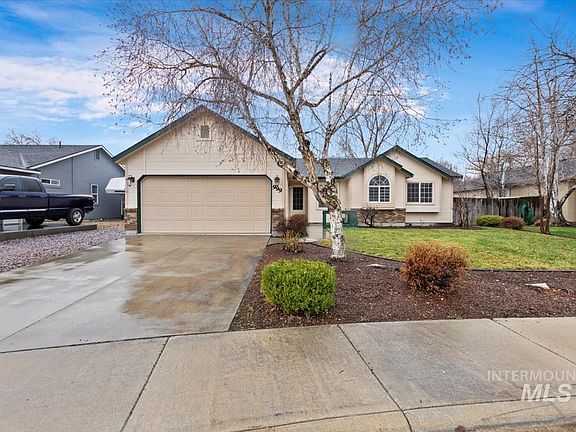 This little cutie is all about LOCATION! Adjacent to downtown Meridian, close to The Village & sitting on a spacious lot in a quiet loop with NO BACK NEIGHBORS, this home offers privacy & close proximity to amenities. With all new interior paint, baseboards, new flooring & new Frigidaire appliances, this home has sooo much to offer! You'll love the large, bright windows to the floor, vaulted ceilings, kitchen overlooking the front yard, split bedroom design, cozy living room with gas fireplace & extra living space--perfect for a home office, den, flex space, etc. Updates include: brand new roof, new HVAC (furnace/AC), refinished cabinetry, new LVP flooring, updated hardware, new lighting fixtures, gas fireplace, storm doors & window seat in front bedroom. Relax on the charming front patio or under the pergola covered back patio with beautiful landscaping, mature trees, raised garden beds & garden shed with roll-up door. The 2 car garage offers epoxy flooring & extra RV parking on the side.