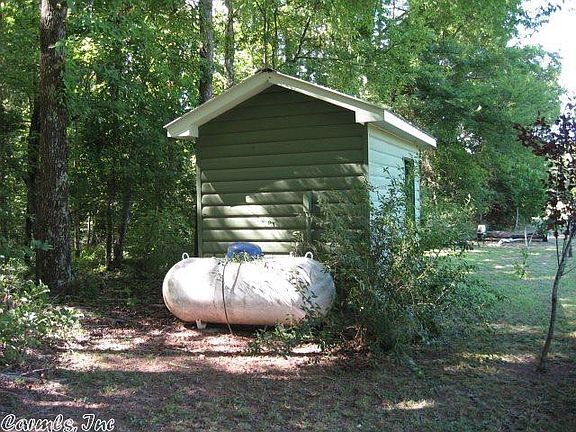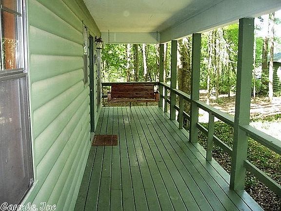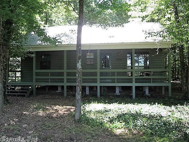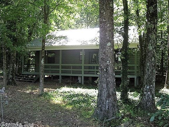 A river runs through it! This hide-away includes these amenities and more: A 2 bedroom secluded cabin, quality built with porches front and rear, a beautiful interior, metal roof, all set back in the oaks. There is a river and a creek, it joins National Forest, has marketable timber, with a level hay meadow, and lots of deer and turkey run free. Plus maybe a few bears. Owner is leaving his fiberglass deer stand. Nice view from the entrance and from the cabin across the open land. Priced below appraisal.