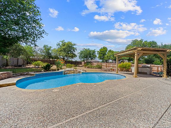 Nestled on a large corner lot is this stunning home, perfect for your next journey in life! Your own private oasis awaits with an exceptional pool and outdoor kitchen. As you step inside, you'll be greeted by a bright, spacious home with a warm and welcoming ambiance. The main areas of the house are adorned with elegant tile flooring, while the rest are completed with wood-like flooring, combining style with practicality for easy maintenance. The home features a spacious study with French doors for elegance and privacy, as well as a wonderful formal dining area with a beautiful antique chandelier. Gather with loved ones in the living room featuring a cozy fireplace. Numerous picture windows have been thoughtfully placed throughout the home, allowing abundant natural light to flood in, accentuating the airy and open atmosphere. New owners can find relaxation in the primary bedroom featuring high ceilings and an ensuite bathroom with a soaking tub and standing shower. Step outside to the backyard, where the shimmering pool beckons you to indulge in hours of leisurely enjoyment and soak up the sun in ultimate privacy. This home offers the perfect blend of indoor and outdoor living, catering to your every desire for comfort and relaxation, including an exquisite outdoor kitchen ideal for entertaining and enjoying al fresco dining. This home is located in Schertz and provides easy access to great shopping and dining options. Additionally, an easy commute is accessible by Highways 1604 and I-35 nearby. Book a private tour today and discover the beauty of this amazing home!