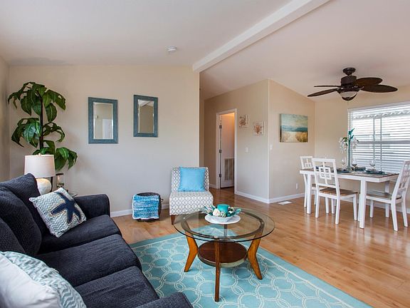 This home is in a highly-sought-after Carriage Acres Mobile Park is waiting for its new owner. Space #2 is located at the entrance and is one of the best spots in the park. It's upfront and near the overflow parking area, which is very handy for visitors or an extra vehicle. It's on the property's edge, alongside an orchard, and is very peaceful.The home is move-in ready, freshly painted from the high ceiling down to the baseboards, new carpets, and new blinds throughout out. You'll appreciate the efficient kitchen with its gas stove, quiet dishwasher, & stainless refrigerator.The recently updated master bath features a new tub/shower, and the laundry area is equipped with modern appliances, too.Outside, the carport handles two vehicles. Also, you'll notice the stamped concrete patio is next to the orchard, providing a sweet spot to relax.The all-age, family-friendly park is commuter-friendly too. It's just a mile to Soquel Village's shops, two to Hwy 1, and three to the beach.