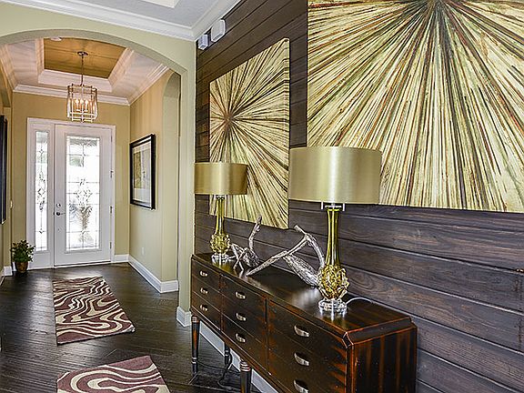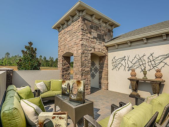Don't miss out on the opportunity to own a model home! This home is on a prime over-sized corner lot close to the community amenity center. This 2 bedroom, 2.5 bath home is sure to stun with its' custom built ins, wood flooring, and upgraded custom tile work. Home has private den at the front of the home with built ins and double french doors for privacy. The lanai has been upgraded with pavers and a completed outdoor kitchen with grill, hood, and fridge. Builder Warranty!