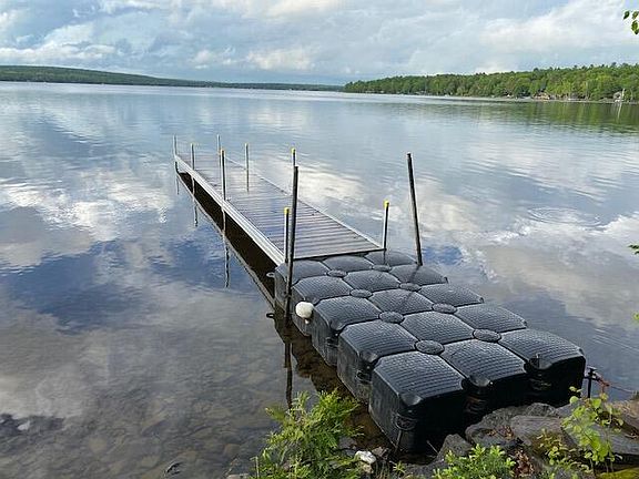 Steps down to the lakefront are rewarded with a new dock system, included in your purchase. The waterfront is nice, stones not marsh. If you're a water-lover, this is a blessing!