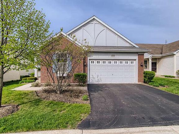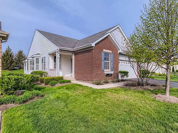 PRISTINE PALM SPRINGS MODEL w/9 ft ceilings features 3 BR's plus 1st floor den & laundry room, sunroom & large master suite! Kitchen is open to family room & sunroom, has a breakfast bar plus bay window in the eating area. It features 42" cabinets, Corian countertops, hardwood flooring & GE Profile appliances! The dining area also has a bay window to accommodate a longer table. The interior has 6 panel pine doors, is freshly painted & has brand new carpeting! Huge basement w/9 ft ceiling & rough plumbing for 3rd bath is great for storage &/or future finishing! Enjoy walking trail, ponds, indoor & outdoor pools, activity & fitness center in a gated community!