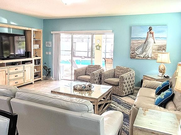 Welcome to your fully furnished home away from home! Relaxing with the whole family has never been easier. We invite you to enjoy this cozy, yet spacious, 6 bedroom, 4 bathroom haven. This property has everything you need including starter amenities, linen, a brand new washer and dryer, and a fully stocked kitchen. Spend time enjoying outdoor living by the pool, use the propane grill, get comfy in one of the two living areas, or in your own space. Whether you're visiting the Central Florida attractions or simply enjoying beautiful Florida days, this two story residence is equipped with everything you need for the vacation you deserve. We are able to accommodate short-term rentals for a little as five days and we have extended stay rates available! Contact us directly for more information. This beautiful, fully furnished, six bedroom, two story, pool home is available starting mid-May 2025 for month to month rent! Relax in a gated resort community in the heart of Central Florida. With a dedicated office space, two living areas, and plenty of seating outside by the pool, this home is spacious, with enough room for privacy, and move in ready. Our home is perfect for a traveling family, seasonal guests and it can be used for corporate housing. We include linen for all the beds, and extra towels for up to 16 guests. With a brand new washer and dryer, an outdoor propane grill, a full kitchen with a great dishwasher, stocked with pots, pans, plates, silverware, etc. you have everything you need in this vacation home to make it feel like your own. Wi-Fi, Roku, and all utilities and taxes are included in the price. Don't miss your chance to experience Florida living at its finest. Contact us today. No smoking inside and no pets allowed. Smoking and Pet violations start at $1000. There are two parking spots available in the driveway and one parking spot in the garage. The home is located in a gated resort community that offers a gym, tennis courts, community pool, etc.