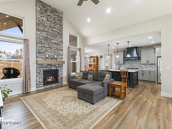 Stunning, Better-Than-New Ranch Home with Breathtaking Mountain & Inlet Views! Amazing opportunity to own at 2.25% Assumable VA loan!! Fall in love with this exquisite 3-bedroom, 3-bath ranch-style home featuring a spacious bonus room complete with its own full-size closet and private bath--perfect for guests, a second living area, or a fourth bedroom!The heart of the home is a gourmet kitchen boasting sleek quartz countertops, a custom range hood, double ovens, and a butler's pantry outfitted with a mini fridge and wine cooler-an entertainer's dream! Enjoy the warmth and charm of the show-stopping fireplace beneath vaulted ceilings in the open-concept living area. Need a space to work from home? You'll love the dedicated office with stunning mountain views that will inspire productivity every day. Outside, this home is just as impressive with beautiful stone accents, modern black-framed windows, and an extended driveway perfect for RV parking. Store all your gear and toys in the oversized 1003 sq ft garage a rare find! This property truly has it all - gorgeous design, luxury finishes, and unmatched views. Love where you live and don't miss your chance to own this exceptional home!