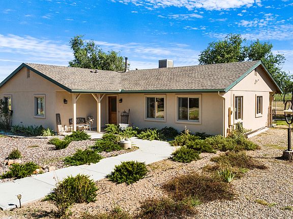 Incredible 4.71 Acre property with 4 bedroom Single Level Farmhouse. 8+stall 2800sqft barn with 5600sqft hay barns, roping arena, fishing/swimming pond. 12 V-mesh fenced paddocks (6 with shade), circle driveway, garden area & root cellar. This charming home offers Anderson wood-clad windows, GrandRiver wooden interior doors, luxury vinyl flooring and tile. Granite counter tops in kitchen and baths. Barn has full elect w/ tack room and workshop. Mature variety of shade & fruit trees. Spacious grass front yard. Private yet so close in to all that Chino Valley offers on all paved roads. Plenty of room for all your family, animals and toys! High producing well. Add'l acreage available. Come see this idyllic retreat today!