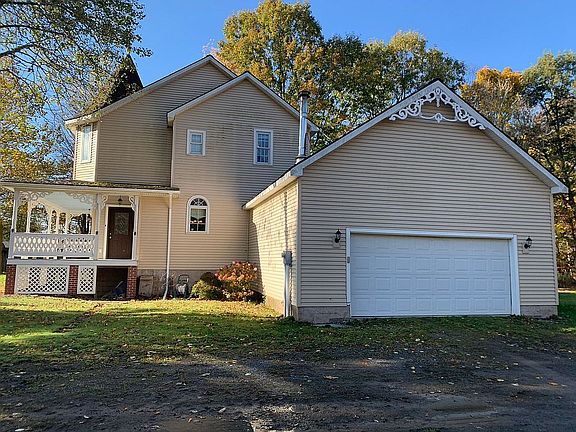 If you're looking for a private, cozy home then you don't want to miss this charming 2 bedroom, 2.5 bath Victorian style home situated on 5.3 acres. The beautiful foyer welcomes you into the living room with its comfortable inviting fireplace and french doors to the new composite deck. Formal dining room with new hardwood flooring looks into the private wooded back yard. You'll love the kitchen with the center island and quaint windows. First floor laundry and 1/2 bath complete the main floor, along with an oversized 2-car garage. Second floor boasts large master suite with a spectacular bath with soaking tub and walk in closet plus another large bedroom with it's own private bath and additional walk-in closet. So much to love about this unique home...don't wait, it won't last long!