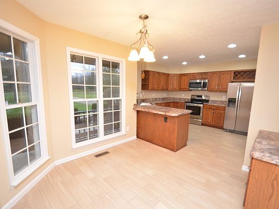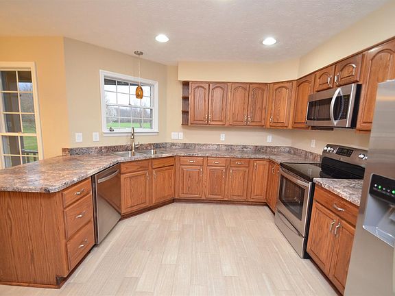 Nice custom built ranch on 2.5 acres. Fully equipped kitchen w/new stainless steel appliances. Skylights and vaulted ceiling in large great room. 1200 sqft double tiered deck. Within 2 minutes of I-71 and Ft. Ancient.