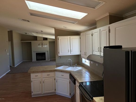 Beautifully remodeled Manufactured home sitting on a level ground acre lot with the backyard completely gated with chain link fencing. Paved road leads right to the front on home. Home includes fresh paint inside and out, new roof, new carpet, new laminate wood floors, newly tiled bathroom floors and countertops, new light fixtures and fans along with stainless steel appliances. Tall vaulted ceilings with big windows for lots of natural sunlight. Large living areas with a fire place. Master bedroom has a walk-in closet, large bathroom with bathtub, separate shower and double vanity. Lots of space for building and expanding to your pleasure.