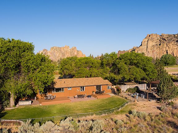 Perched atop the Crooked River Rim w/panoramic views of Burma & Smith Rock w/2.7 acres of land, 1 acre of COID irrigation, & a highly upgraded single level w/a large shop awaits the buyer looking to be situated amongst these glowing stones. The great room layout of the home is amazingly functional & the entire home has newer luxury viny plank except in the tiled bathroom w/radiant floor heat. The kitchen's quartz counters are expansive & lead to a large single bay sink looking right at Burma, the Bosch induction range a dishwasher are first rate & the stainless appliances are newer. The primary bedroom has an office, walk in closet, slider w/access to the deck, & a beautifully remodeled bath w/tiled shower. The guest bathroom is remodeled w/a tiled shower as well. An attached greenhouse has access right into the house & the home features lots of built ins, large utility w/sink, a good pantry, & ductless heat pumps throughout. The home can also be used as an STR without restriction.