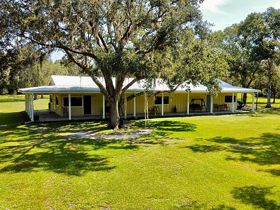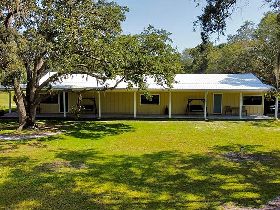 Welcome to country living in Okeechobee little farms-2BD/2BA home with a beautiful wrap around porch on over 4 acres. 1290 Sq ft and 3910 TLA. Tiled floor throughout this freshly painted home.. featuring a 3 bay garage, metal roof 2013, and extra office space.New Drain field 2023. Fully stocked pond you can fish from your own island and roast marshmallows in the fire pit accessed by a wooden bridge. One storage shed and another that contains a water softening system. Lovely well maintained home with gorgeous grand oaks. Only 10 minutes from restaurants and stores. Come see this little slice of heaven! Measurements are appropriate.