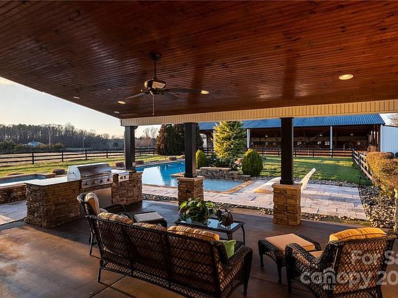 A SIGNIFICANT PRICE REDUCTION on this rare, 21+ acres of equestrian property in historic Mt. Ulla just minutes to Mooresville and Lake Norman. The charming farmhouse style residence was thoughtfully designed for comfortable, easy living. Appointed with newly refinished sinker pine floors, tongue and groove boarded wall accents, completely remodeled gourmet kitchen with high end appliances, new carpeting, interior and exterior paint, roof, garage doors, tankless water heater, HVAC, automated entrance gates....the list goes on! The lovely covered patio with built-in Saber grill and stunning 55 x 15 lap pool with spa and tanning ledge entry, allows for relaxing time outside. Equestrians will delight in the eight-stall custom barn, wash rack, tack room, 120 x 200 lighted outdoor riding pavilion and 80 x 150 covered riding arena, six run-in sheds and multiple fenced paddock areas.Property is flat and all acreage is usable. An incredible setting designed to accommodate any lifestyle.