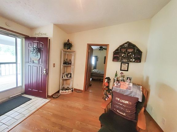 10.6 partially wooded Acres with 5 Bedrooms, 2 Baths, and huge pole bld. This unique ranch home has most likely everything you're looking for with a split floor plan and as a bonus comes with a 1 year Home Warranty. Come sit on the huge covered deck and enjoy beautiful nature everywhere. The spacious pole building has 4 overhead doors gas heat & air compressor with lines. All appliances will stay including washer, dryer & water softener.